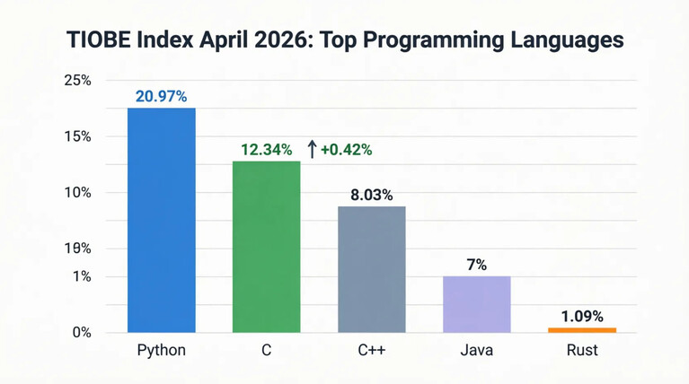 🐍 Индекс TIOBE за апрель 2026: Python правит балом, C не сдаётся, а Rust буксует